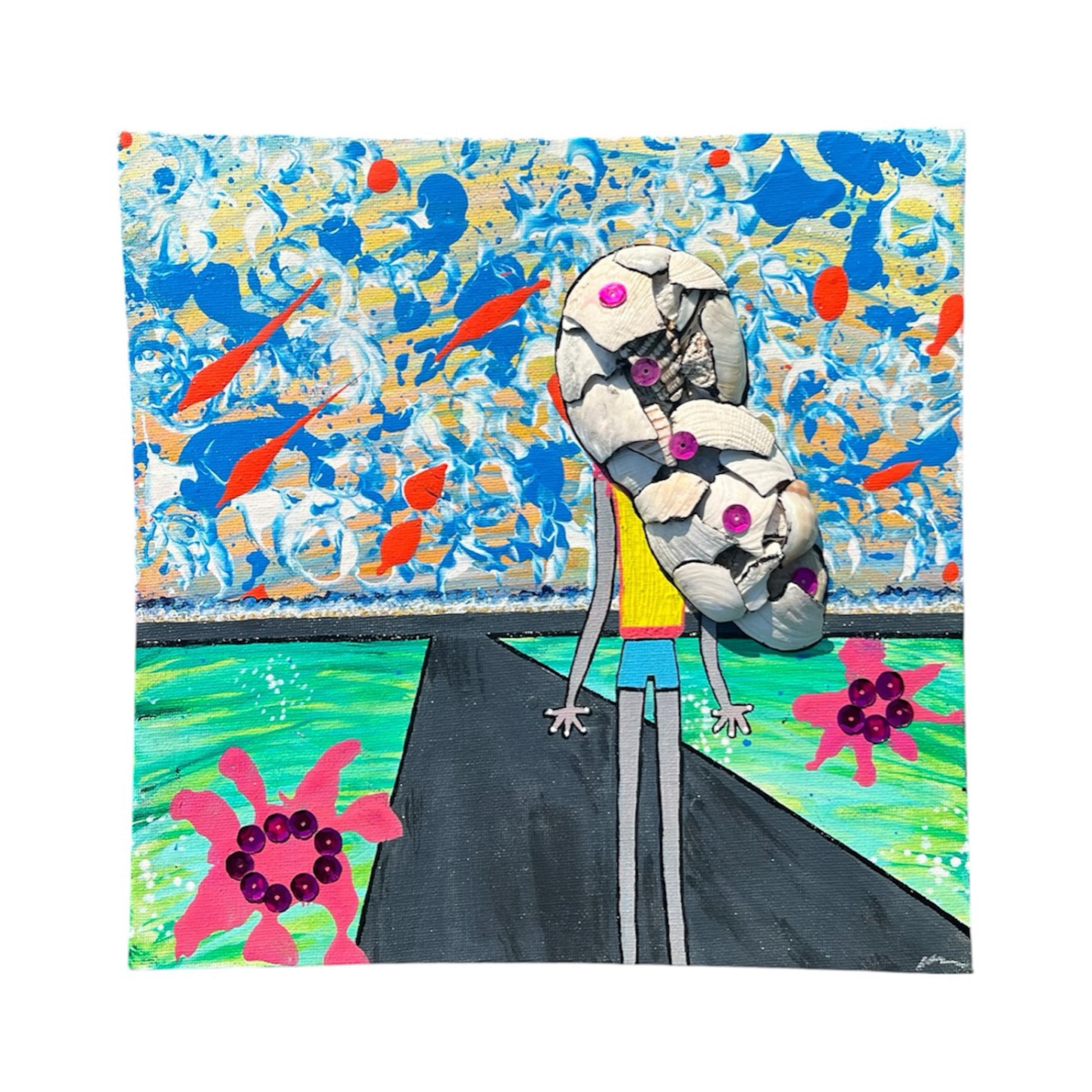 - Materials: Acrylic, sequins, seashells, glitter & ink pen on canvas