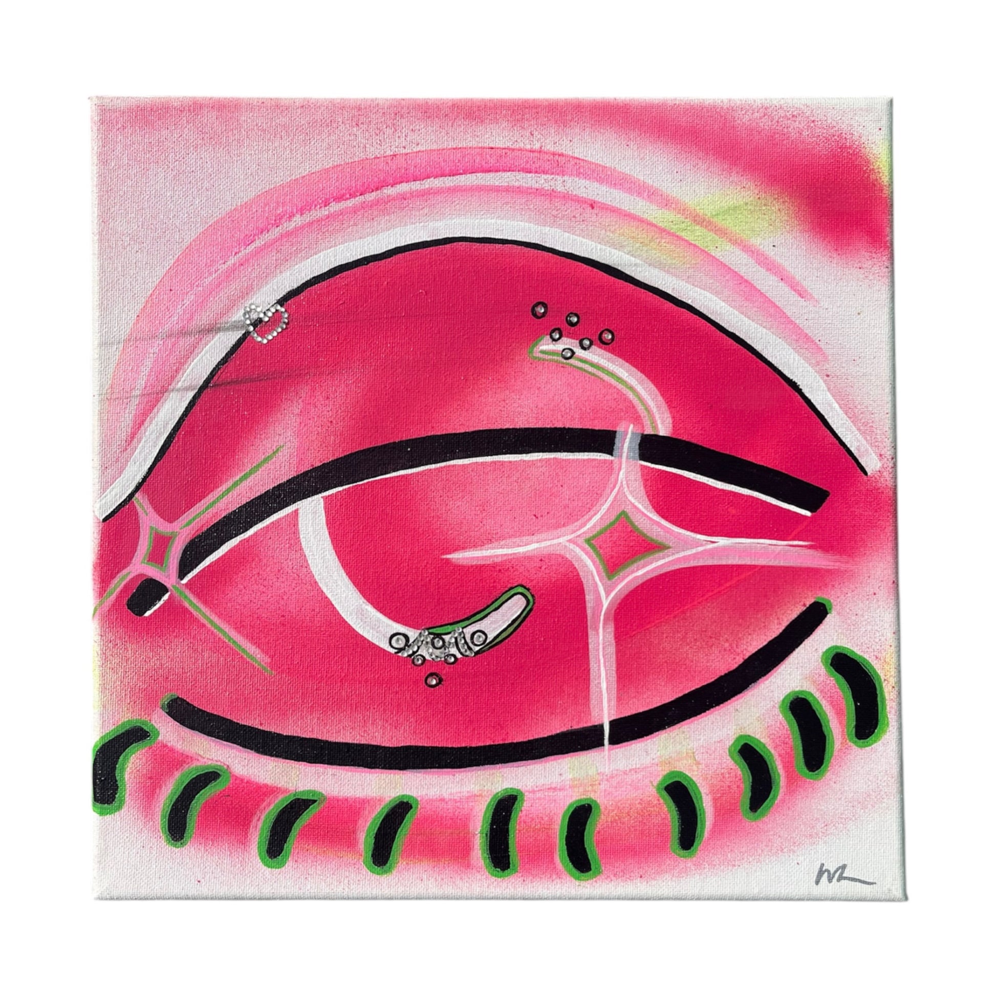 - Materials - Acrylic paint, rhinestones, spray paint and a paint pen