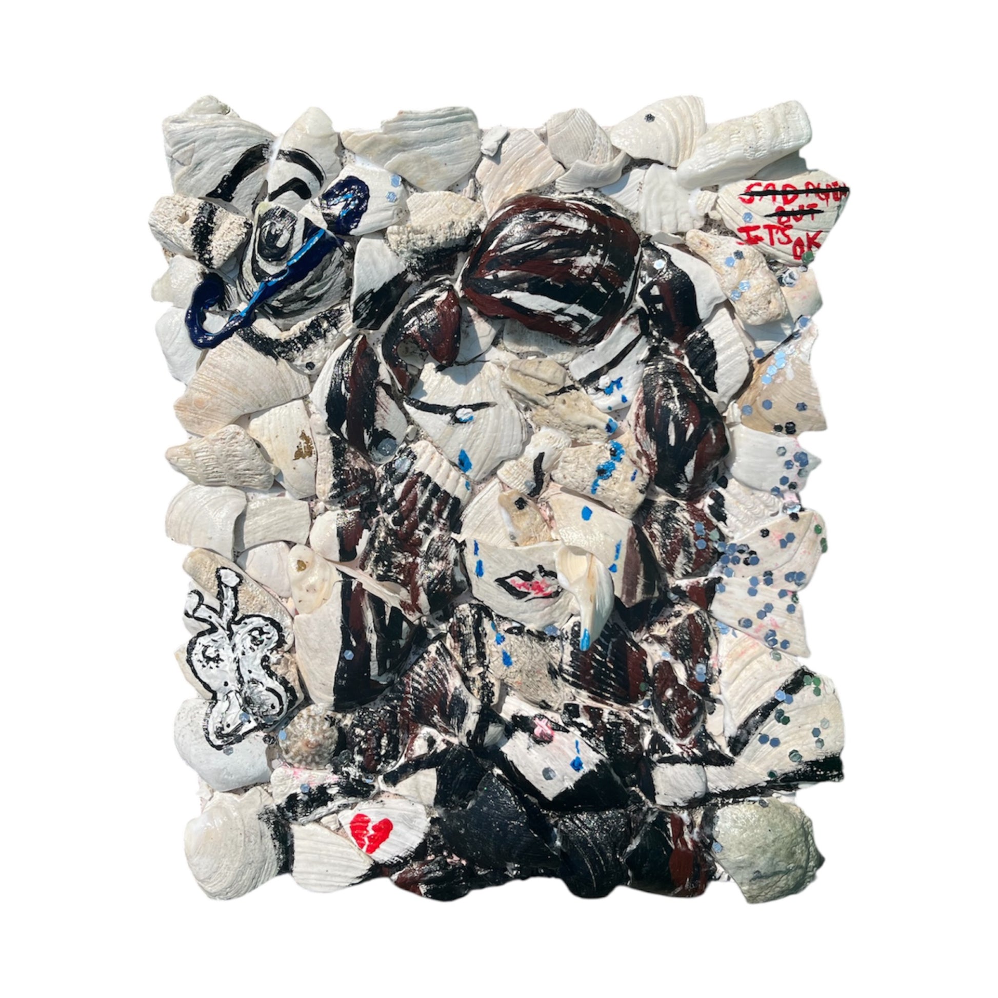 - Materials: Seashells, acrylic, glitter & ink pen on canvas