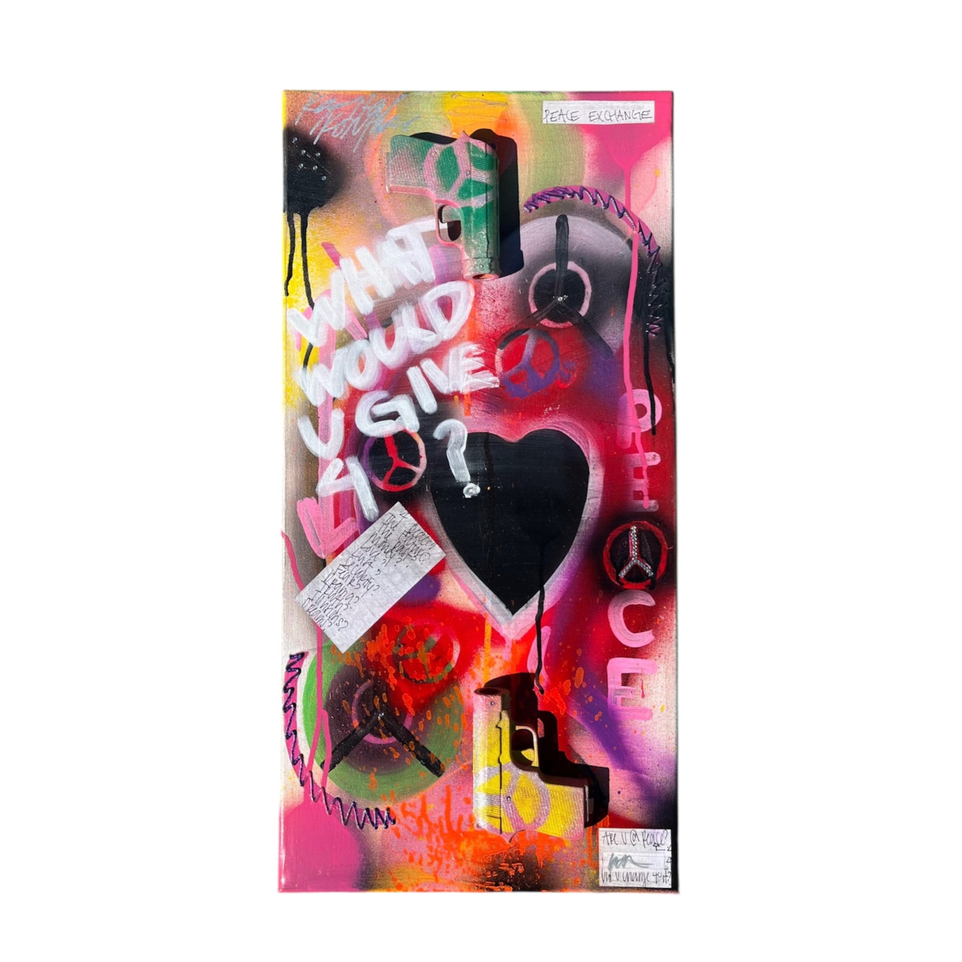 - Materials - Acrylic paint, paint pen, spray paint, rhinestones, glitter, notebook paper and the peace guns featured in Kapital Kouture's "Battle Peace" Photoshoot
